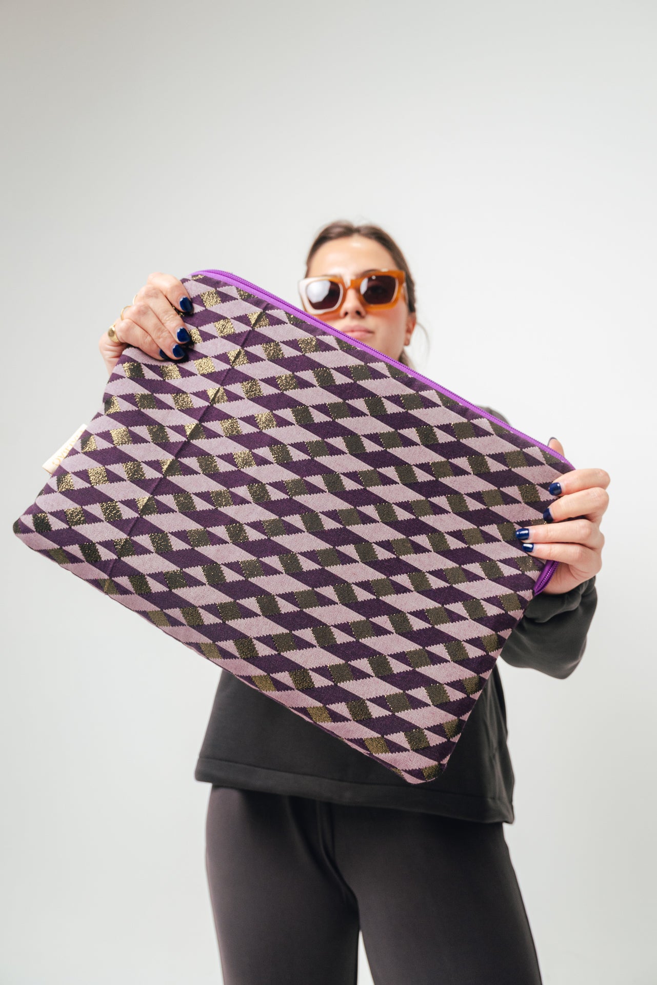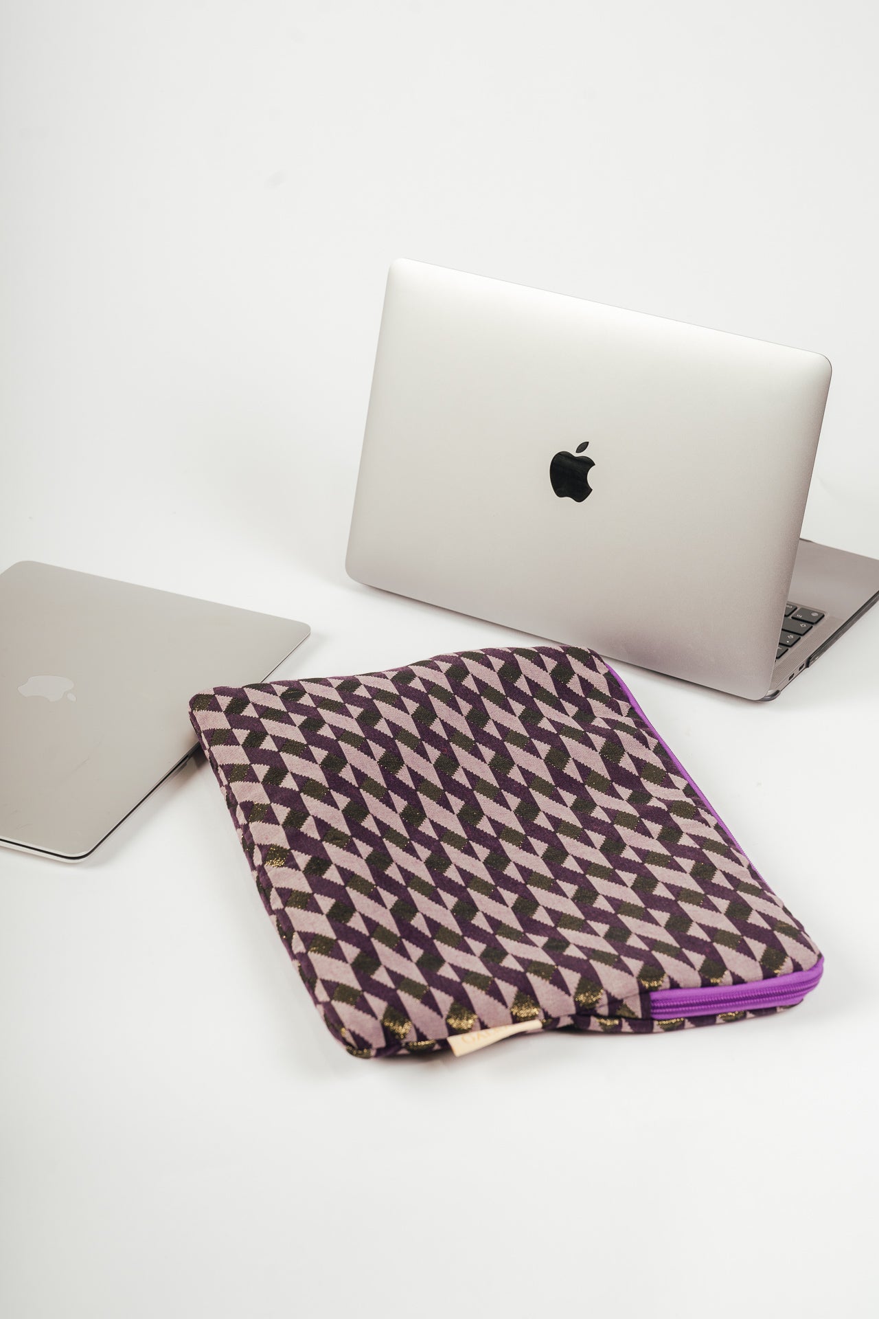 La funda de ordenador Alpha está diseñada para acompañarte con estilo y sofisticación en cada paso de tu camino hacia el éxito. Con un exclusivo tejido jacquard brocado y detalles dorados, esta funda no solo resalta por su elegancia, sino que también refleja la ambición de llegar a lo más alto.