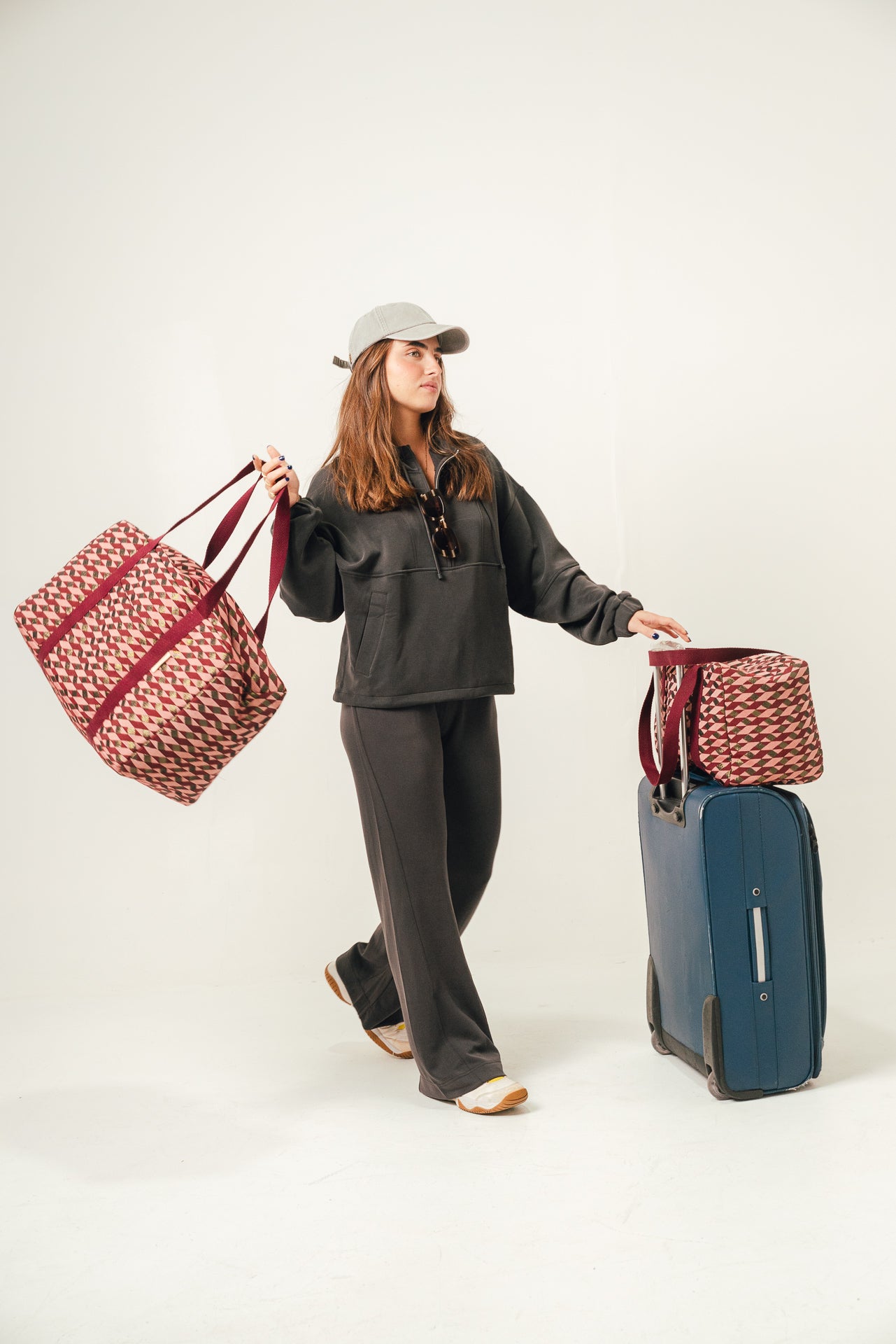 La colección Alpha está diseñada para que te sientas única y lista para alcanzar tus sueños. Con un exclusivo tejido jacquard brocado y detalles dorados, cada maleta refleja la misión de elevar tu estilo y acompañarte en cada paso de tu viaje.